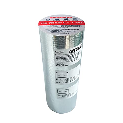 GEFONG Gomma Butilica Impermeabile Nastro in Foglio di Alluminio Lunghezza 5m Larghezza 30cm Nastro di Riparazione per Condotti Tetto Grondaia Riparazioni Interne ed Esterne 1 Rotolo