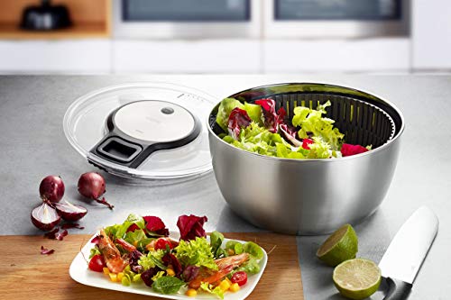 Gefu - Centrifuga per insalata Speed Wing 28160, per un'insalata perfettamente asciutta, ciotola in acciaio inossidabile