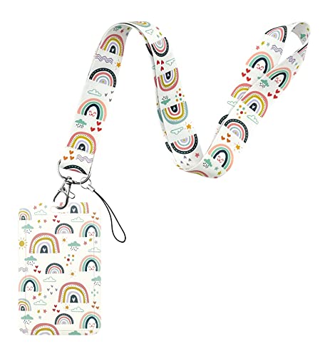 Geiomoo Cordino da Collo con Porta Carte, Cordoncino con Porta Badge (Arcobaleno Disegnato)
