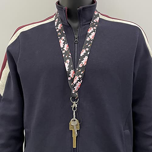 Geiomoo Cordino con Gancio Girevole, Laccio da Collo per Porta Badge (Nero Fiori di Pesca)