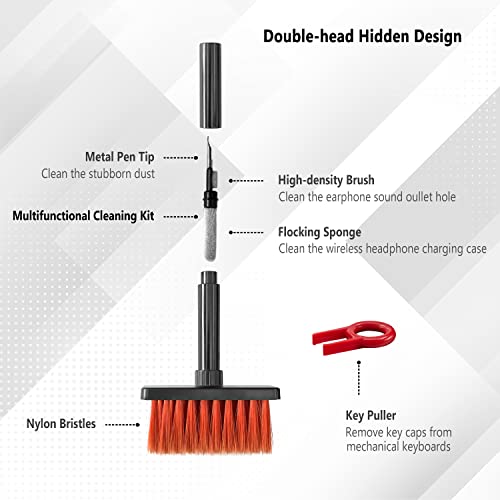 Geiomoo Spazzola Pulizia Tastiera, 5 in 1 Multiuso Strumenti di Pulizia con Estrattore per Tastiera (Nero)