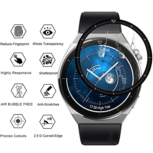 GEJEFA [3 Pezzi Vetro Temperato per Huawei Watch GT3 PRO 46mm, [3D Curved Edge to Edge], Anti-Graffio, Bubble Free Pellicola per Huawei Watch GT3 PRO 46mm, Nero