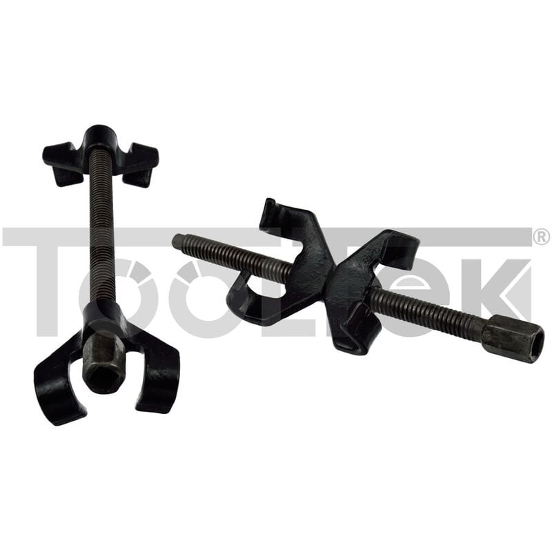 Kit estrattori comprimi molla apertura regolabile fino a 260 mm . Utilissimo attrezzo per comprimere ed estrarre molle e ammortizzatori. Consente di eseguire da soli la sostituzione delle molle/ammortizzatori senza alcun bisogno di un'officina specializzata, risparmiando così tempo e denaro.Lunghezza: 260 mm Si utilizza con una chiave dinamometrica o con un semplice cricchetto.La confezione in cartone è composta da due stringi molle come da foto. Prodotto di qualità.