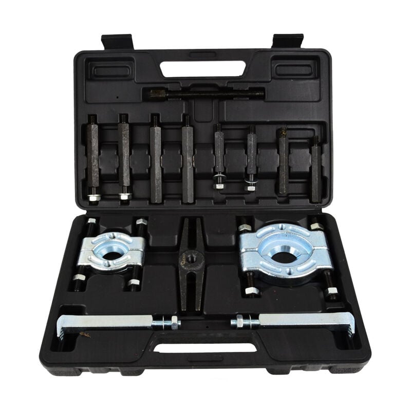 Nelle auto nelle moto, furgoni, camion ecc. esistono moltissimi cuscinetti.Nel cambio nel motore nell'avantreno nelle sospensioni, questi cuscinetti possono avere diametri diversi e forme diverse.Quando questi ultimi si danneggiano o diventano rumorosi devono essere sostituiti e talvolta è richiesto l'uso di particolari estrattori.Questo kit di estrattori per cuscinetti siano essi interni che esterni è indispensabile nelle operazioni di revisione dei cambi, dei gruppi dell'avantreno, nelle scatole guida, nei carter delle moto, ed in moltissimi altri componenti dei veicoli. All'interno della confezione troverete ben due lame da taglio da 2 (50mm) e 3 (75mm), 1 estrattore con foro centrale filettato e asta, 2 coppie di zampe e 2 coppie di prolunghe.Il tutto riposto in comoda valigetta. CONTENUTO DEL KIT: -1 estrattore 160 mm con foro filettato per l'asta di tiraggio e due scanalature longitudinali da 57 mm, -1 asta con filetttatura da estrazione da 175 mm con centraggio -2 lame da