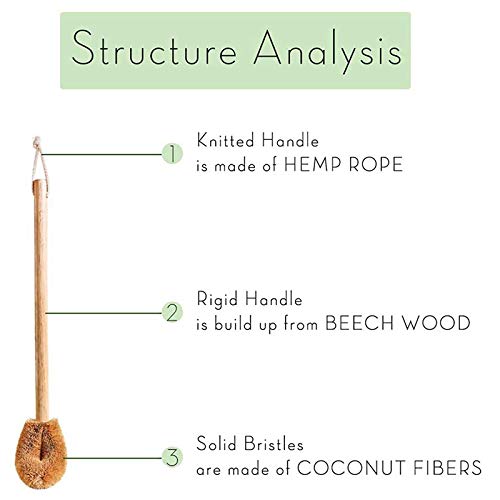 Questo scopino per WC ha una struttura resistente. Le setole solide sono realizzate in fibra di cocco, e il manico rigido è costruito in legno di faggio che è robusto e dura a lungo.