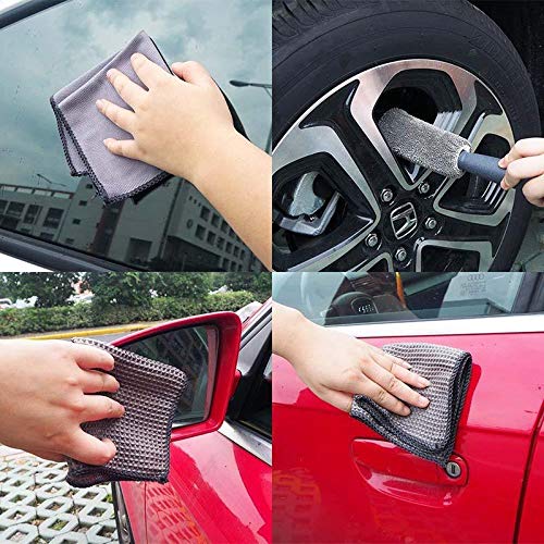 Gelentea - Set di 9 strumenti per la pulizia dell'autolavaggio in microfibra, guanti e asciugamani, applicatori, spugnette, kit di spazzole per lavaggio auto, pulizia della casa e dei vetri