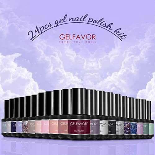 GELFAVOR Smalti Semipermanenti Per Unghie,Smalti per Unghie in Gel UV LED con 10ml Base e Top Coat, Matt Coat,24 Pezzi Smalto Gel Unghie Colorati er Manicure fai Da Te e Uso in Salone