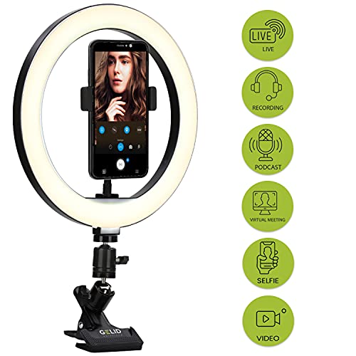 Gelid Solutions LED ring light con treppiede, luce ad anello con supporto per cellulare, ideale per selfies, foto e video