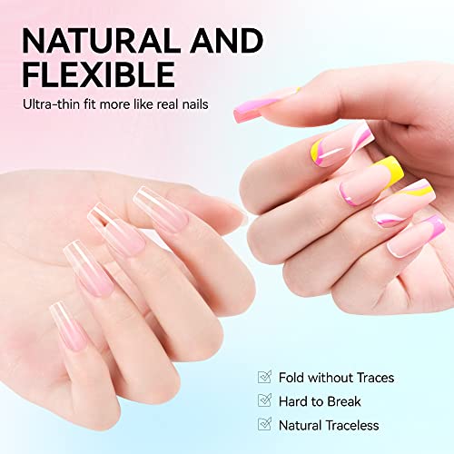 Punte morbide per unghie in materiale di alta qualità: le punte per unghie in gel morbido gelike ec costruite con resina PMMA soak off. Poiché il materiale è privo di ABS, le unghie finte sono sottili e leggere, naturali e comode da indossare. Le punte per unghie a copertura completa di media lunghezza sono perfette per le unghie e non richiedono molta limatura.