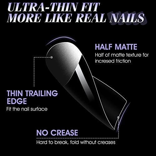 【Materiale Rivoluzionario - Resina Morbida】 Tip in gel è realizzata con il materiale in gel morbido ammollo invece del tradizionale materiale ABS economico. Ciò significa più sottile, più malleabile e più naturale. Riduce i danni alle tue unghie vere. Non tossico, cruelty free, inodore e innocuo per le tue unghie naturali.