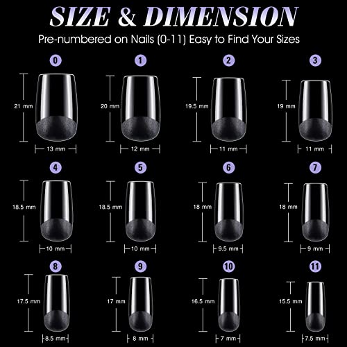 Gelike ec Unghie Finte Corte in Gel, Tip Unghie Trasparenti Full Cover Tips Gel (Quadrato Corto) 240pz 12 Taglie, Copertura Completa, per Saloni di Manicure Professionale, Principiante, Resina