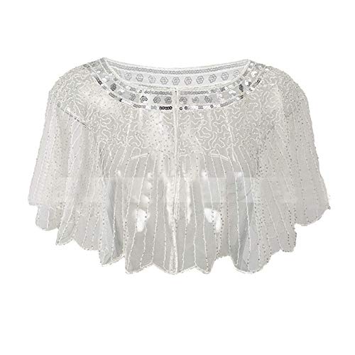 GELing Donna Cape da Sera con Perline Flapper Scialle con Paillettes Shawls Stola Scialle per Matrimonio Coprire Up Argento Bianco