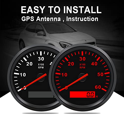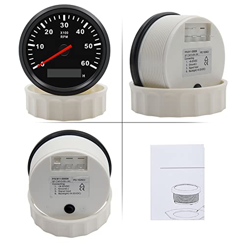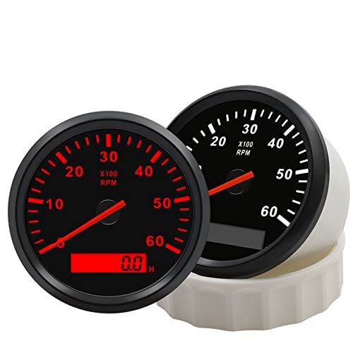 Geloo Contagiri universale 85mm 6000 RPM Impermeabile Tachimetro con Contaore per Marini Auto Camion Barca Rosso Retroilluminazione