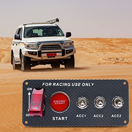 Geloo Pannello Interruttore di Accensione 12 V Auto da Corsa Engine Start Push Button Pulsantiera Fibra di Carbonio LED Interruttori a Levetta