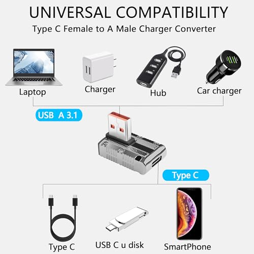 Adattatore da USB a USB C con angolo di 90 °: l'adattatore da USB 3,1 A a USB C è progettato per convertire la normale porta USB 3,1 maschio su PC / laptop in porta USB C femmina, supporta la ricarica rapida da 120 W e il trasferimento di dati da 10 G. Nota: non supporta il segnale video.