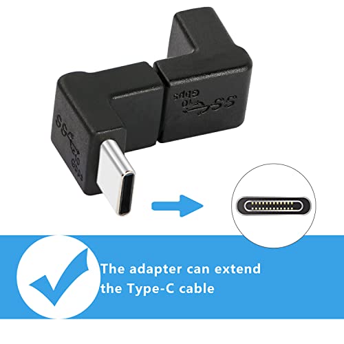 GELRHONR Adattatore USB-C maschio a femmina da 90 gradi, connettore USB 3.1 tipo C Gen 2 (10 Gbps) ad angolo su e giù, supporto per la trasmissione dei dati di ricarica-2Pack