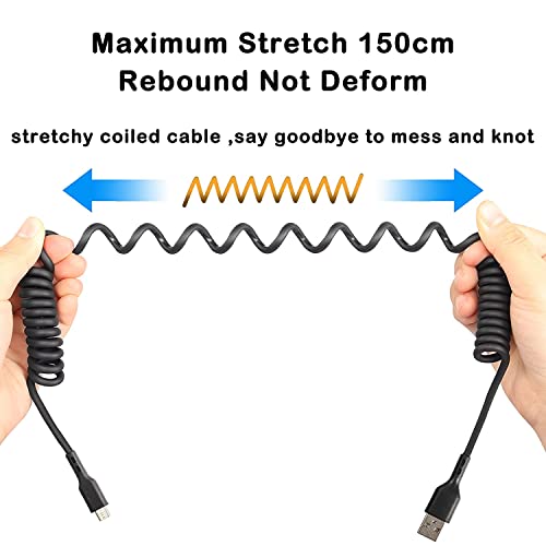 GELRHONR Cavo Micro USB A Spirale, Cavo USB A Maschio A Micro USB A Spirale A Molla Sincronizzazione Dati E Cavo Di Prolunga Dati Di Ricarica-Nero-(Max 1.5M/4.9Ft)