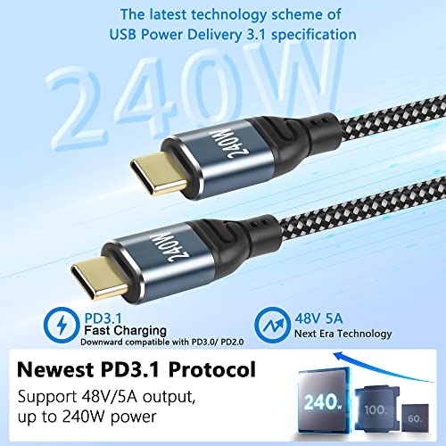 GELRHONR Cavo da USB C a USB C da 240 W, PD3.1 (48 V 5 A), cavo di ricarica rapida USB 2.0 da 480 Mbps, per computer portatile, hub, dock e altro ancora (1 m/3,2 ft)