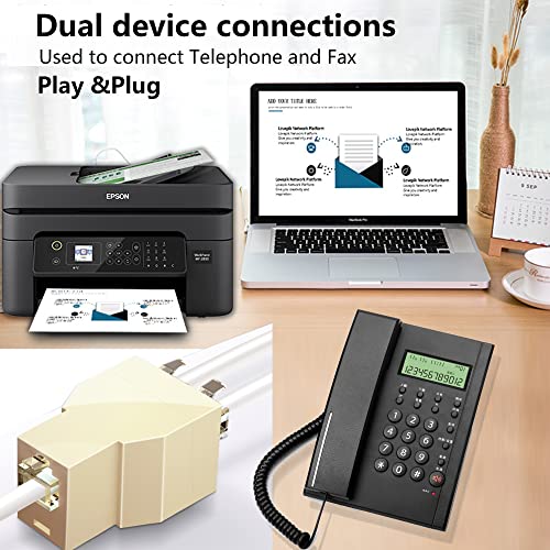 Facile da usare: solo una linea telefonica può essere utilizzata per separare 2 dispositivi per l'uso simultaneo senza interferenze reciproche. Basta collegare l'adattatore alla presa telefonica RJ11 e collegare i cavi RJ11 (non in dotazione) all'adattatore. Un'estremità è 6P4C femmina e l'altra estremità è due prese RJ11 6P4C.