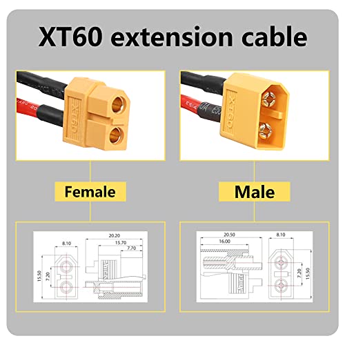 Utilizzo: utilizzando questi cavi XT60, è possibile utilizzarlo per caricare biciclette elettriche, drone, auto RC, quadricottero e connessione batteria.