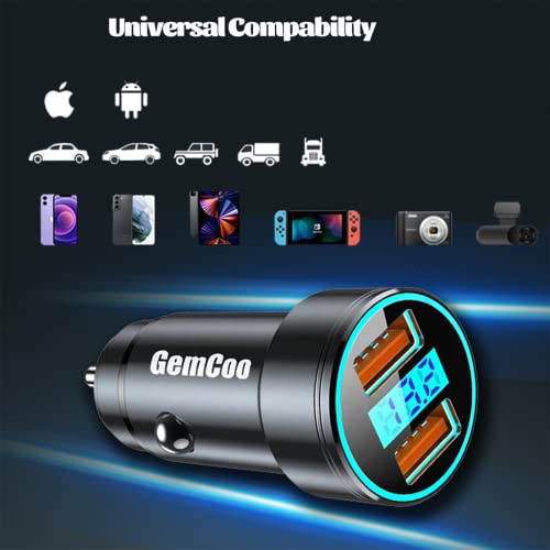 GemCoo QC3.0 Caricatore USB da Auto 45 W, Presa USB per Auto Caricabatteria rapido da Auto USB con Voltmetro LED, Accendisigari USB Adattatore Doppio QC 3.0 per Tablet Telefono (nero)