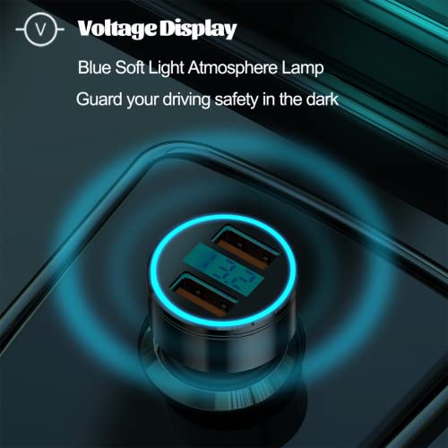 [ Indicatore di tensione LED]: Questo adattatore accendisigari USB rileva automaticamente la tensione richiesta, l'uscita più efficiente, in base al dispositivo collegato. Assicurati che la ricarica sia veloce ed efficiente. Grazie al design eccellente del display a luce morbida, comodo per trovare l'accendisigari al buio, godere di una guida sicura.