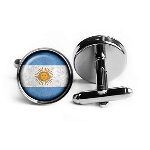 Gemelli a forma di piccolo elfo argentina con bandiera argentina, gioielli in vetro a cupola, realizzati a mano