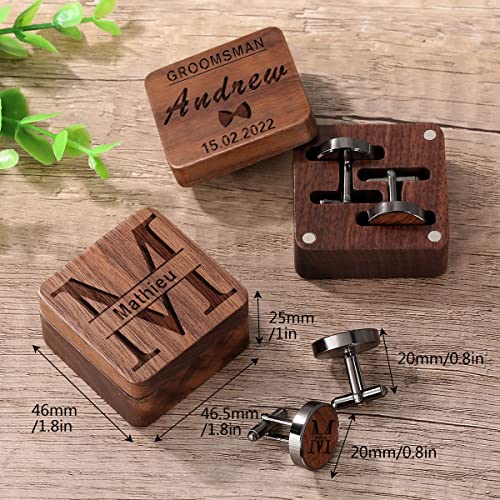 Gemelli personalizzati per uomo sposo migliore uomo matrimonio gemelli regalo gemelli in legno per papà marito con scatola, noce nero, nome inciso data o qualsiasi testo