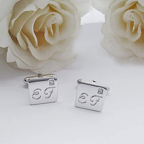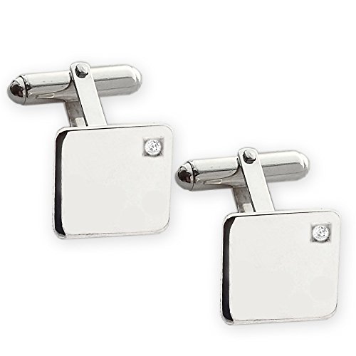 Gemelli quadrati con iniziali in argento rodiato 925 millesimi e diamanti naturali carati 0.04