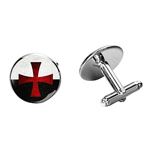 Gemelli da uomo con sigillo templare massonico, motivo: salomoni, tempio, in vetro, rotondi, accessori per camicia