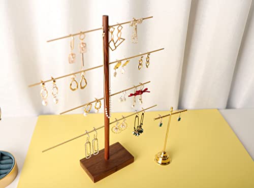 GemeShou Noce Ottone 4 Tier Orecchino Espositore Espositore Collana Gancio Gioielli Organizzatore Rack Vendita al Dettaglio Scaffale in Legno【Walnut Brass 4-Tier Tree Height 37cm】