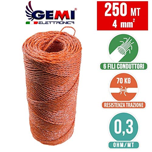 Gemi Elettronica Filo per Recinto Elettrico 250 mt con 6 Fili conduttori Rame 6x0.25 Recinti Elettrici Elettrificati Recinzioni per Animali cinghiali Mucche Cavalli maiali Galline Volpi