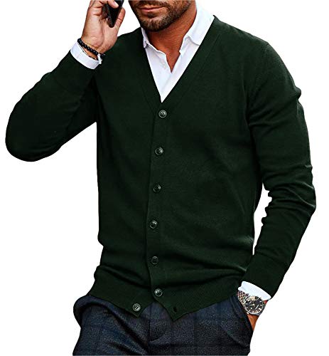 Gemijacka Cardigan da uomo con scollo a V senza colletto Cardigan lavorato a maglia giacca giacca leggera mezza stagione colore multiplo, verde, L