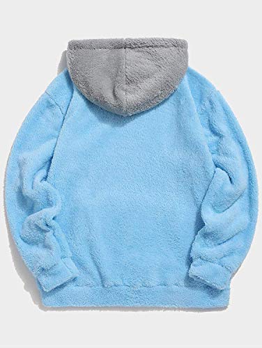 Gemijacka Felpa da uomo con cappuccio, in pile Teddy, con tasche, K - azzurro., m