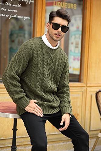 Gemijacka Maglione da uomo con scollo rotondo, a maniche lunghe, lavorato a maglia, verde, XXL