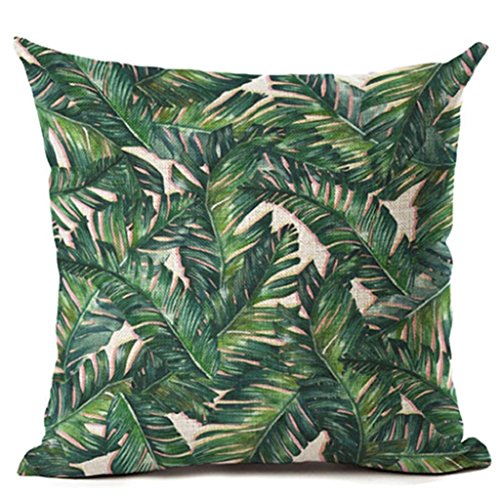 Gemini _ Mall 45,7 x 45,7 cm Square throw Pillow case Home Decor cotone lino cuscino, Lino, Big Green Leaves, 45 x 45 cm