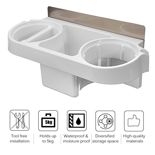GEMITTO Supporto per Asciugacapelli da Parete Autoadesivi, Gancio per Asciugacapelli a Parete da Fissare Senza Trapano, Scaffale Detriti per Asciugacapelli, Pettini, Cosmetici, 28×11×8cm Bianco