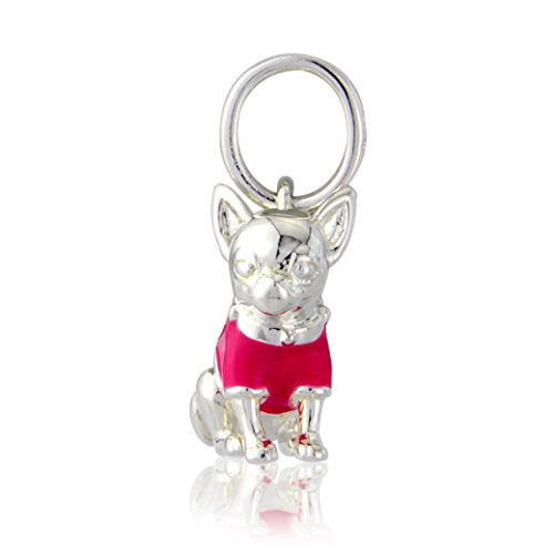 Gemma J Ciondolo Chihuahua in argento Sterling massiccio, compatibile con la maggior parte dei braccialetti con ciondoli, smalto, senza pietra