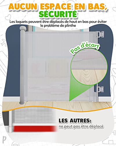 Gemokrt Barriera di sicurezza retrattile, 0-140 cm, barriera di sicurezza per bambini, estensibile, barriera per cane, funzionamento a una mano, per scale, cucina, interno ed esterno (grigio)