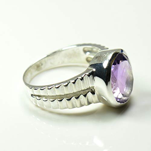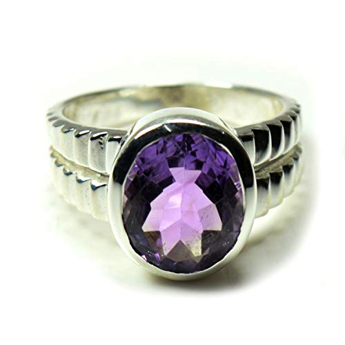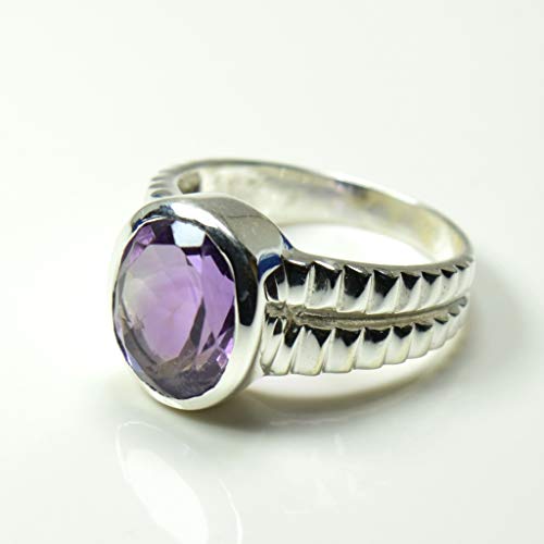 GemsOnClick - Anello da Uomo con Vera Ametista, Pietra Portafortuna del Mese di febbraio, per guarigione dei Chakra, Misura H-Z e Argento, 53 (16.9), Colore: Purple, cod. GOCJPSMN19R156-M