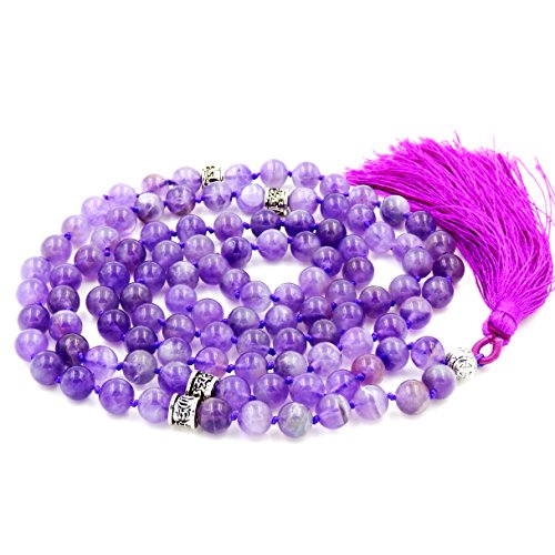 Gemstone collana di perline mala, mala braccialetto, mala rosario collana, annodati collana/bracciale, ametista mala