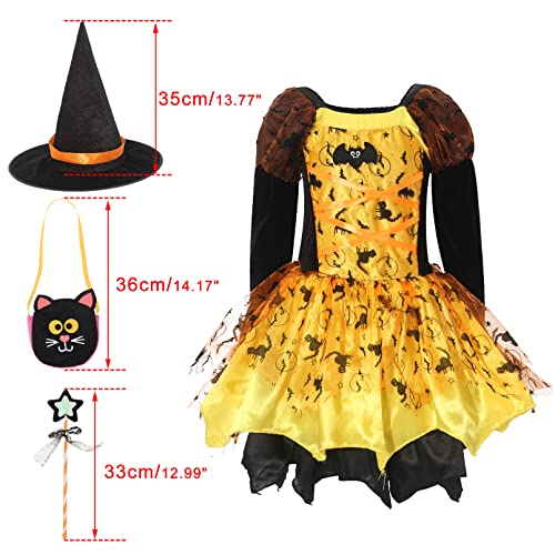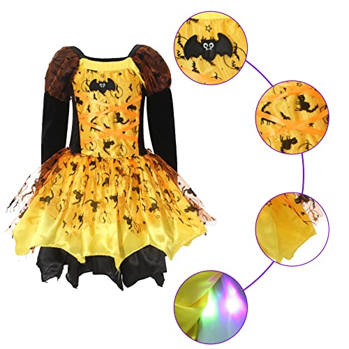 Incantevole costume da strega per bambini con abito da strega a LED e cappello da strega, bacchetta magica e borsa per caramelle, travestimento perfetto per Halloween, feste di strada, carnevale, feste di compleanno per bambini e feste a tema.