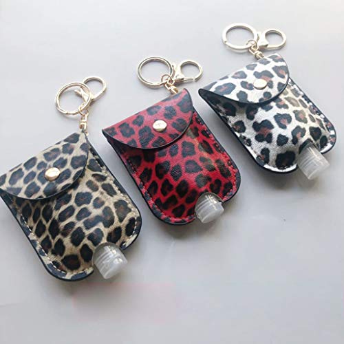 Geneic - Bottiglia da viaggio portatile, vuota, motivo leopardato, in plastica, con portachiavi, per igienizzante per le mani, con clip per la borsa