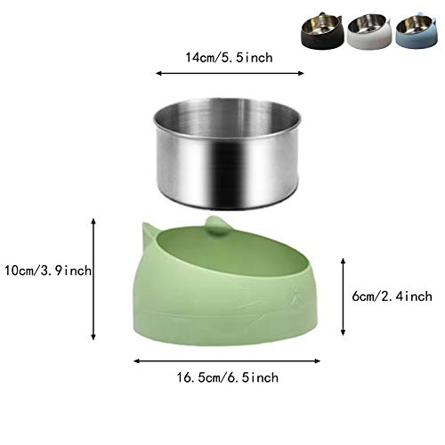 Geneic - Ciotola per gatti in acciaio inox, ciotola per gatti, ciotola per l'alimentazione del gatto, ciotola per acqua per gatti, per alimenti per animali domestici e mangiatoia per acqua (verde)