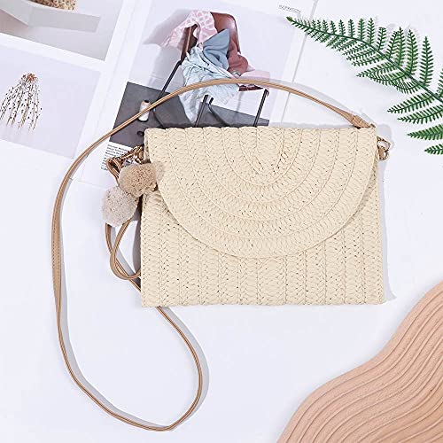 Genenic Pochette da donna, Borsa Mare, borsa di paglia intrecciata a mano retrò, Elegant Clutch Borsa (Beige)