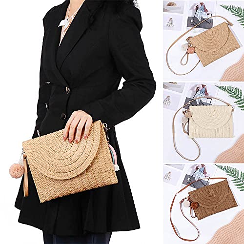 【Borsa da donna di alta qualità】Questa pochette in paglia alla moda realizzata in paglia resistente, leggera e confortevole. Il tessuto denso si combina con la fodera ben cucita che fornisce un aspetto elegante.