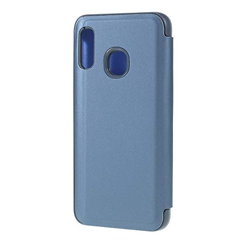 Generale Compatibile per Samsung Galaxy A20E (5.8) SM-A202F sm-a202f/ds Custodia Cover Specchio Riflettente Libro Mirror Stand Case Clear View Mirror Copertura Totale Protezione Touch Schermo (Blu)