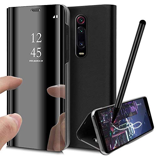 Generale Compatibile per XIAOMI Mi 9T / K20 / K20 PRO / M811H MI9T Custodia Cover Specchio Riflettente Libro Mirror Stand Case Clear View Mirror Copertura Totale Protezione Touch Schermo (Nero)
