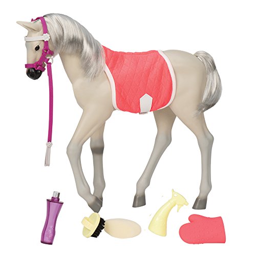 Inclusi nel set: 1 cavallo, 1 coperta, 1 briglia e redini, 1 spazzola, 1 spugna, 1 spray bottiglietta, 1 guanto