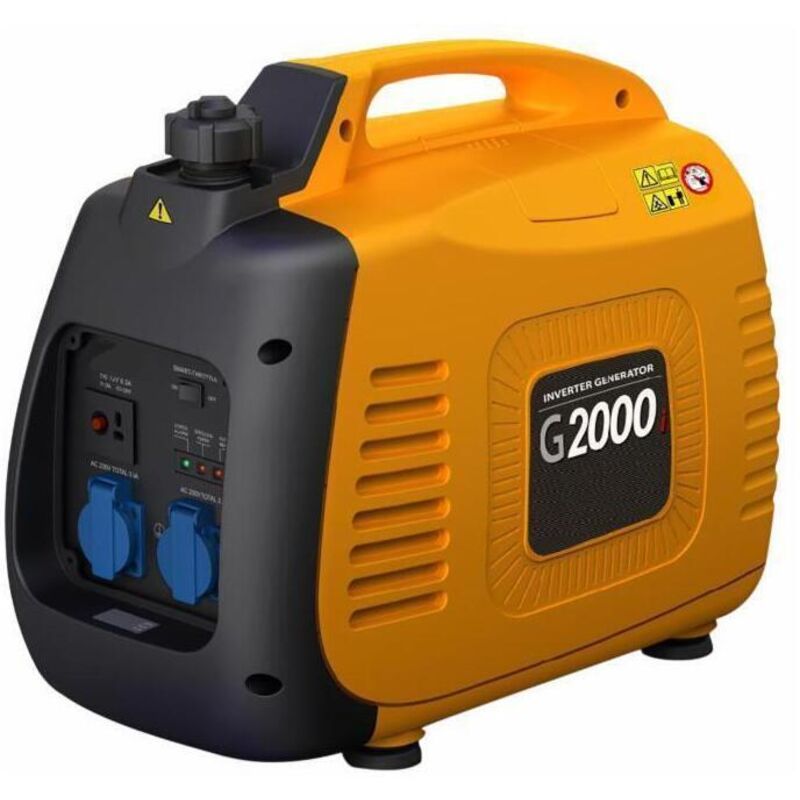 Generatore a benzina Ama modello G2000I di tipo Inverter silenziato, dotato di un motore a scoppio da 113 cc. Ha dimensioni di 445x279x521 mm ed è completo di tecnologia Inverter . La struttura in metallo e plastica è di colore giallo. Tramite l'alternatore con avvolgimento in rame è in grado di erogare una potenza elettrica massima di 2 kW ed ha un'intensità di corrente di 18,7 A. Presenta un' autonomia di lavoro di circa 3-6 ore. La tecnologia inverter, di cui è provvisto, produce corrente continua e stabile che, grazie all'elettronica digitale, viene convertita in corrente alternata. Mantiene costanti la frequenza e la tensione, indipendentemente dalle variazioni del carico e della velocità del motore. Offre una fonte di energia elettrica in ambienti che ne sono sprovvisti di qualità maggiore, più sicura e precisa ;
